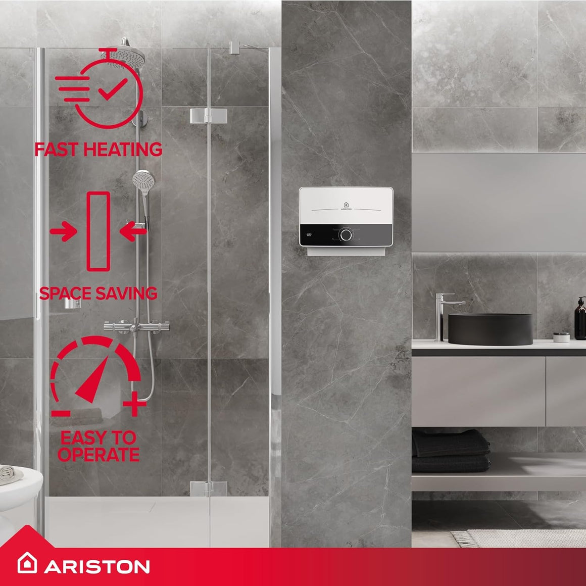 Ariston Aures Multi 9.5kW Instantaneous Electric Water Heater | Multi-Point | ErP Class A
