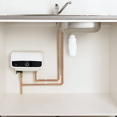 The Multi-Point configuration means the Aures can supply one or several outlets (not simultaneously) from a single unit β suitable for a kitchen sink plus a nearby hand basin, a bathroom wash basin and shower, or multiple hand wash points in a commercial setting. Its compact dimensions (304mm Γ 220mm Γ 110mm) make it ideal for installation in narrow utility rooms, under kitchen sinks, in garages, conservatories, en-suites, and annexes where a conventional boiler connection is unavailable or impractical. MPN: 3195216.