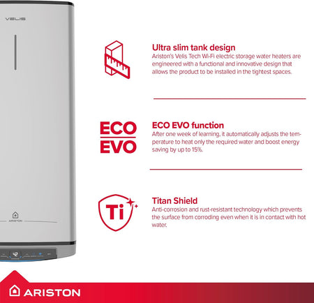 Ariston Velis Tech Wi-Fi 80L Electric Storage Water Heater