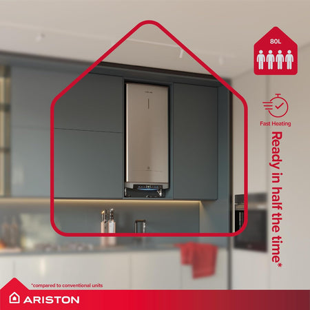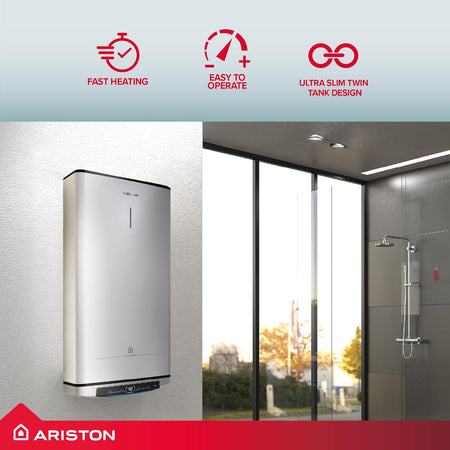The Ariston Velis Tech Wi-Fi 80L is a slim, twin-tank electric storage water heater with integrated Wi-Fi connectivity, designed to meet the hot water needs of small households or multiple users. It combines fast recovery, energy efficiency, and smart app control in an ultra-slim wall-mounted design.