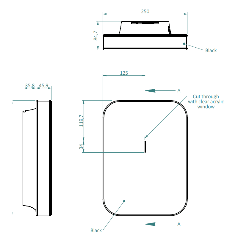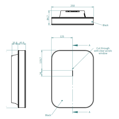 - Dimensions (W x H x D): 250mm x 341mm x 85mm