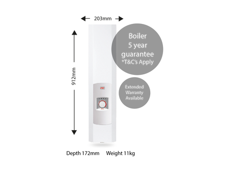 - Robust Safety Features: Unique Run-Dry Water Level Sensor, insulated stainless steel heat exchanger, high current overheat cut-out
