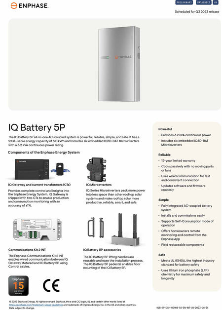 - 1 × Enphase IQ Battery 5P (5.0 kWh usable)