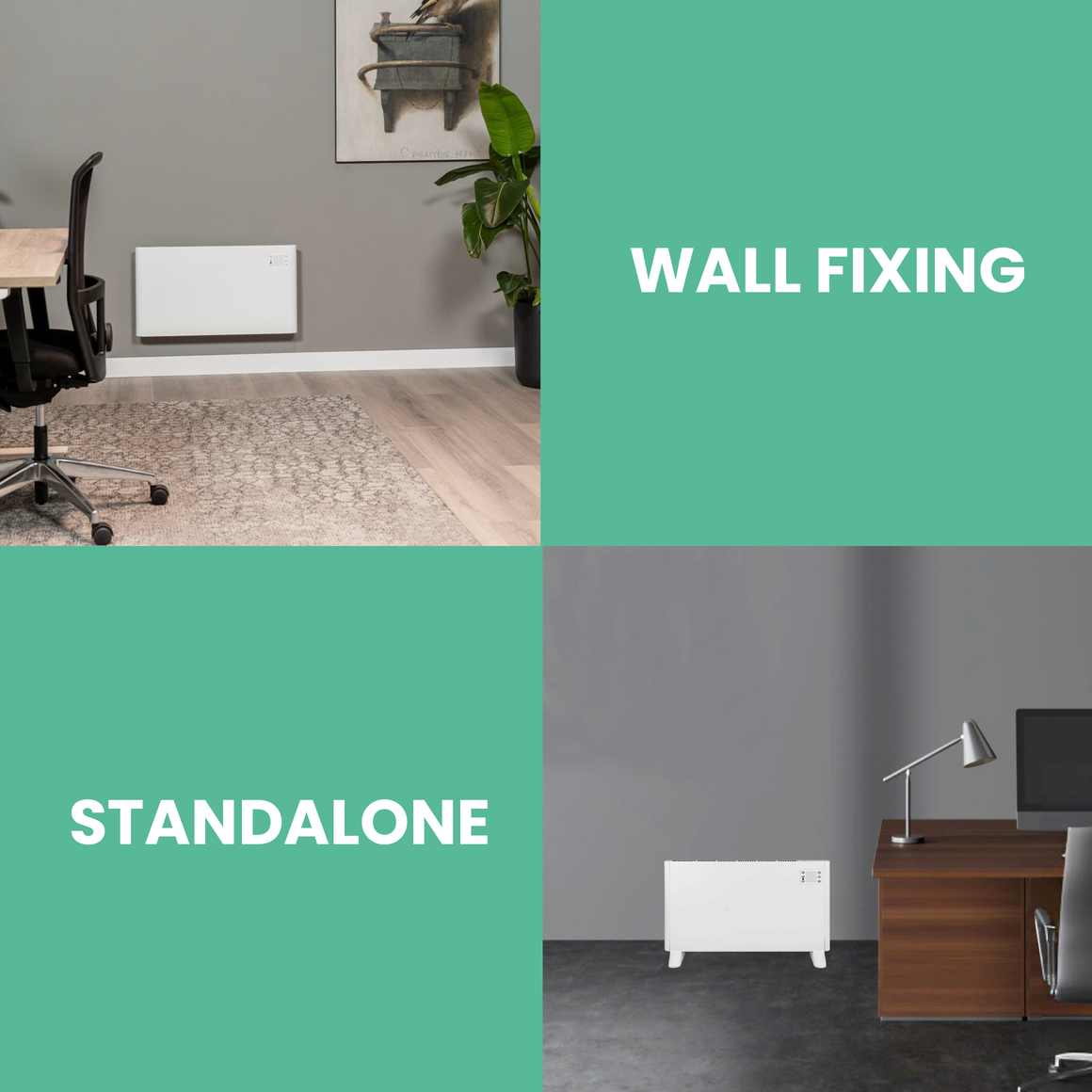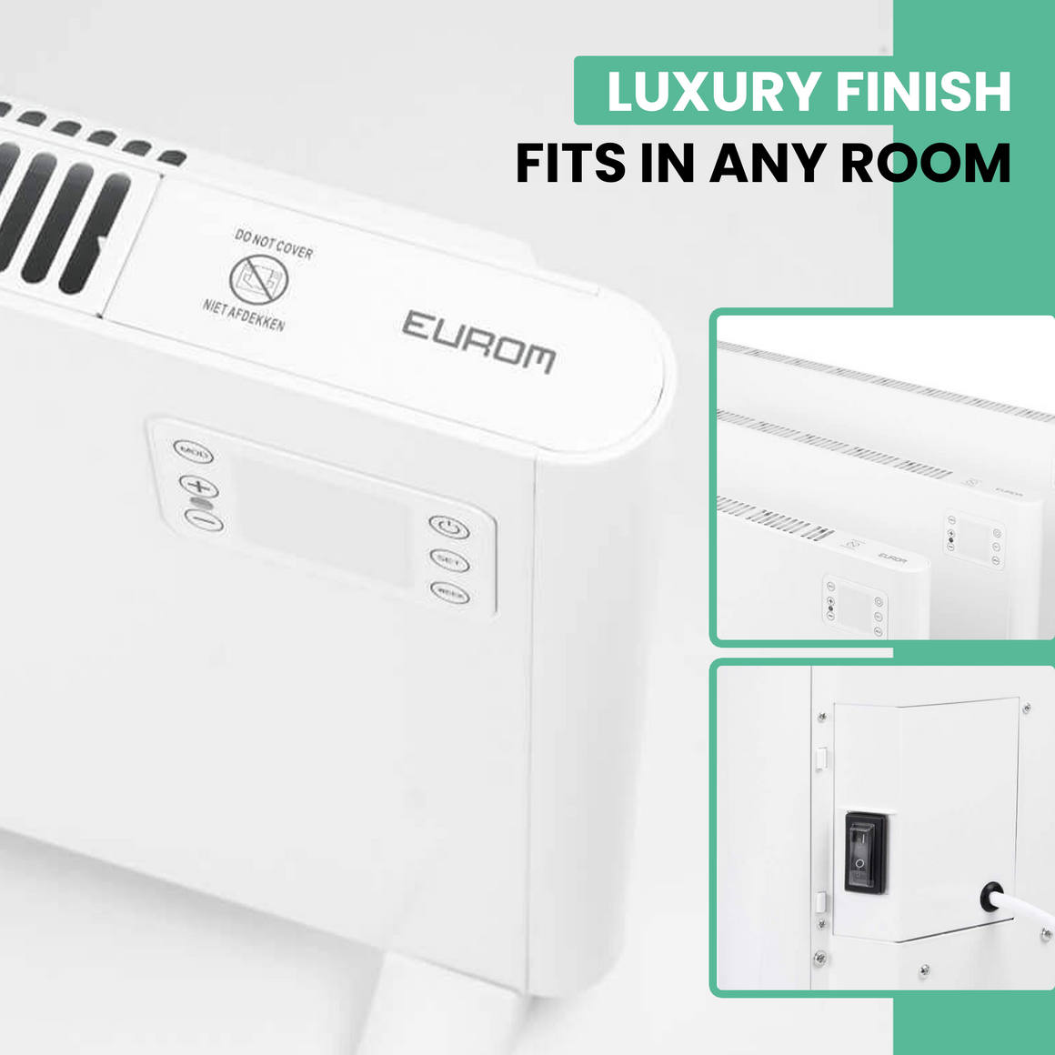 The Eurom Alutherm 2000 WiFi can be easily wall-mounted or placed freestanding with optional feet, offering installation flexibility for different room styles and sizes. Its modern, slimline profile makes it ideal for spaces where both style and space efficiency are important.