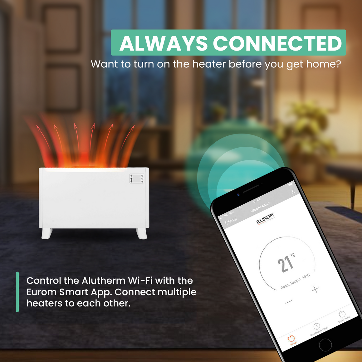 With smart WiFi control and a handheld remote, this heater aligns perfectly with Eurom’s vision of providing energy-efficient, user-friendly, and sustainable home heating solutions supporting the transition to a gas-free future.