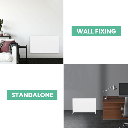 The Eurom E-Infrared 800 is a sleek, compact panel heater delivering 800 Watts of efficient infrared heating, perfect for supplementary or permanent warmth in living rooms, bedrooms, offices, and more. Its modern frameless design and low-profile appearance fit comfortably into contemporary interiors, whether wall-mounted or used freestanding with the supplied feet.