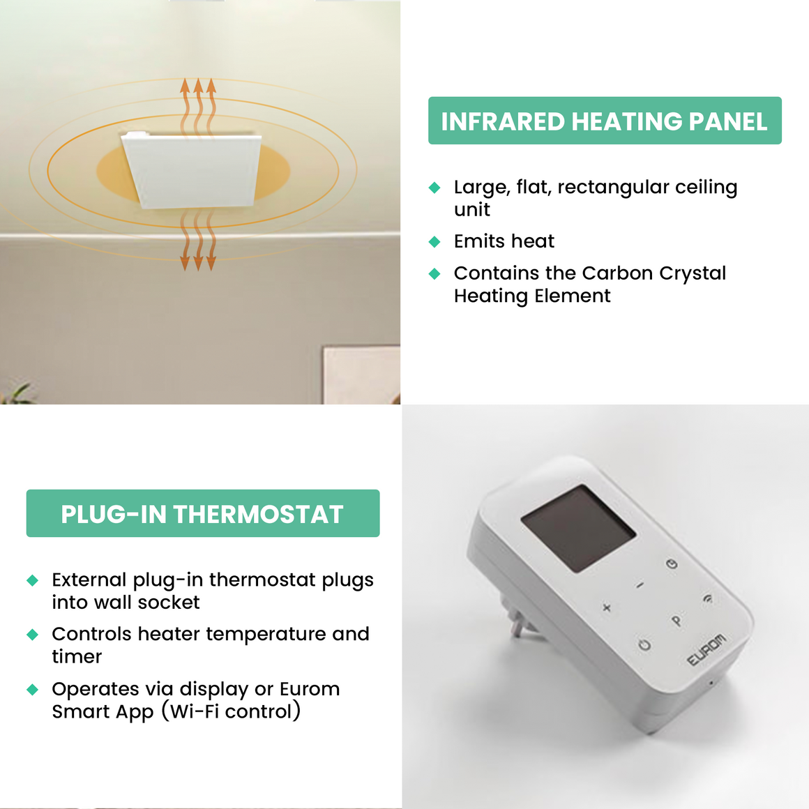 Eurom Mon Soleil 600 Ceiling WiFi Infrared Heater – Frameless, Efficient Ceiling Heating with Smart Control