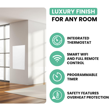 - Frameless, Modern Design: Sleek white panel with minimalist style that blends seamlessly into any interior.