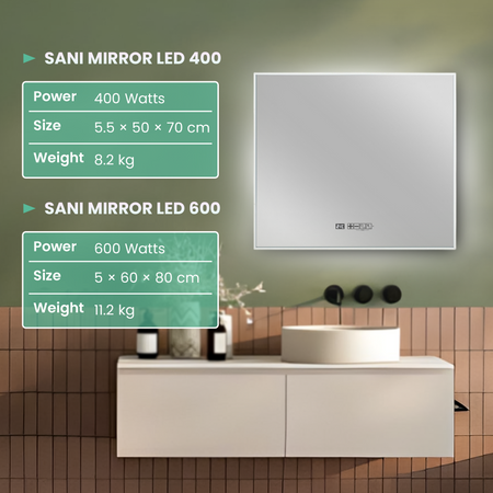 Eurom Sani 400 LED Mirror WiFi Infrared Heater – Fog-Free Heated Mirror for Bathroom Comfort