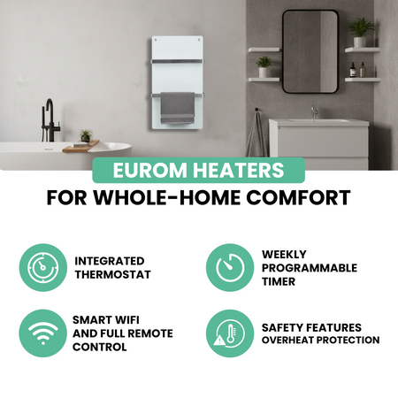 Eurom Sani 400 WiFi Infrared Towel Heater – Efficient, Smart Bathroom Heating with Remote App Control