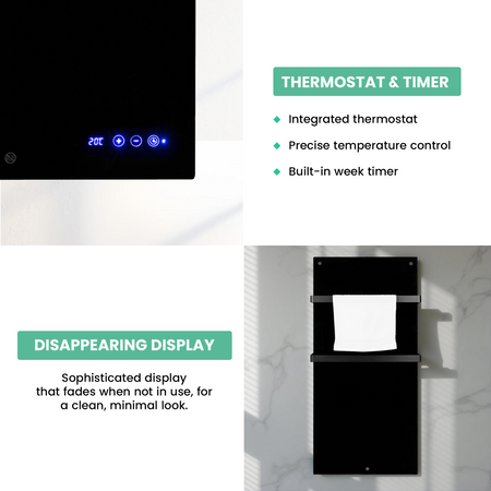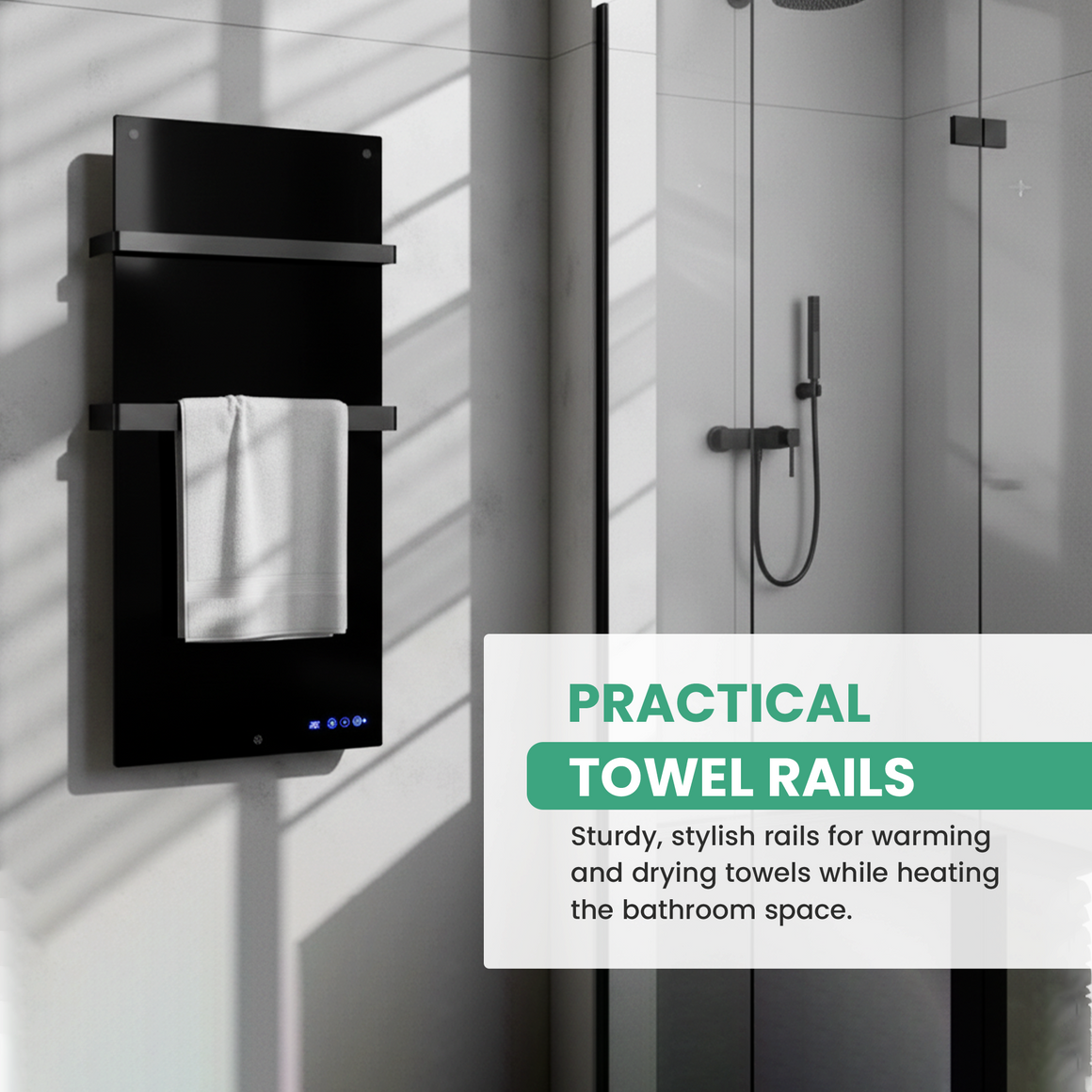 - Practical Towel Rails: Sturdy, stylish rails for warming and drying towels while heating the bathroom space.