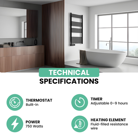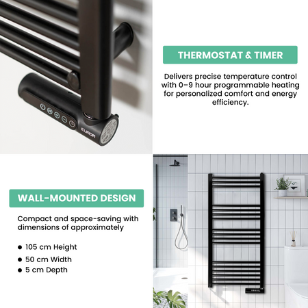 Eurom Sani-Towel 750 Black Electric Bathroom Radiator – Powerful and Stylish Towel Warmer with Timer and Safety Features