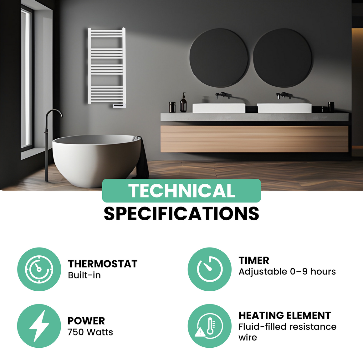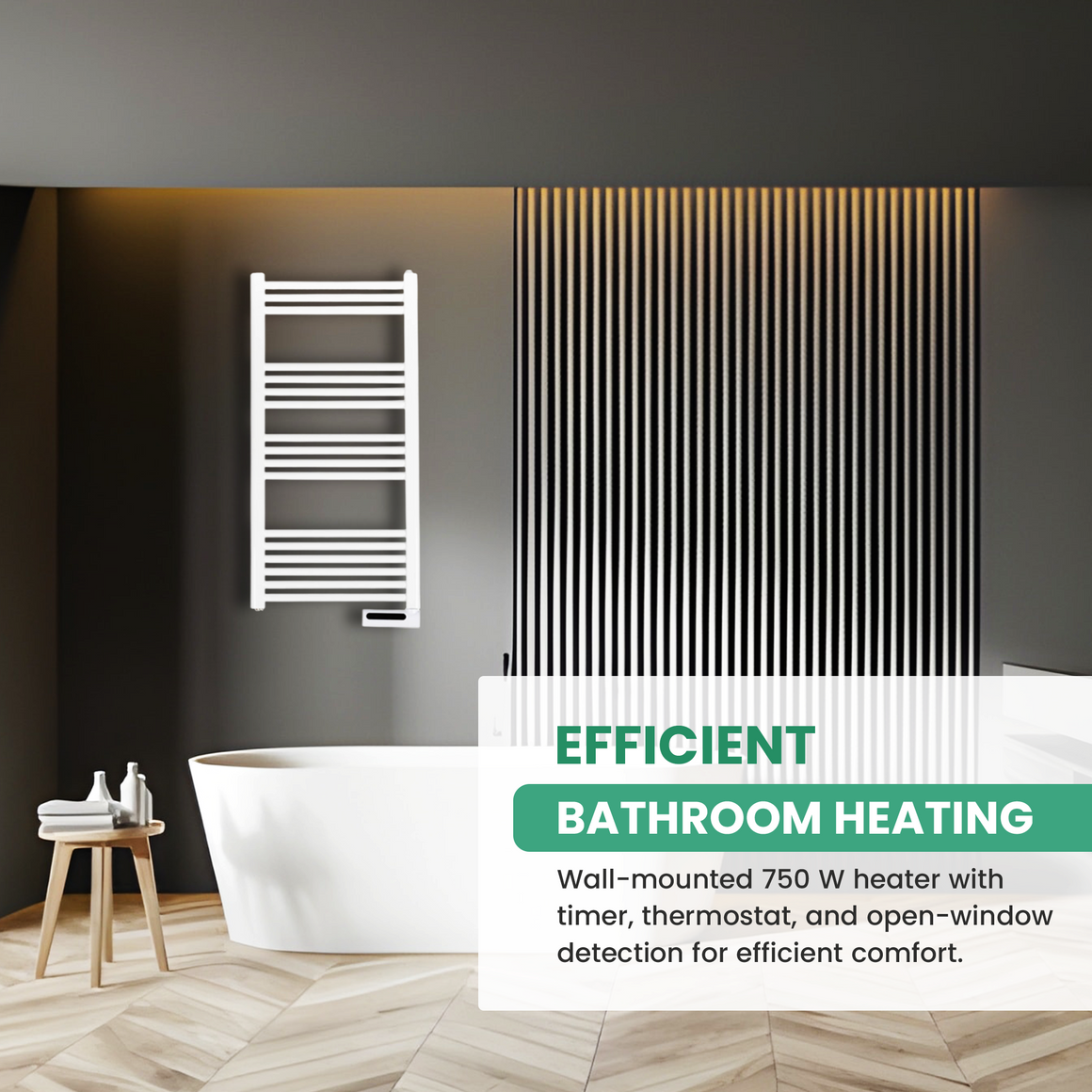 - Powerful 750W Heating: Ideal for larger bathrooms up to 15 m², providing consistent, comfortable warmth.