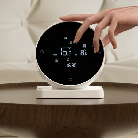 Control your FIA Clay Core Radiators effortlessly with the FIA WiFi Thermostat, a compact UK-designed smart controller for precise, energy-saving heating. Compatible with Alexa and Google Assistant, it offers 24/7 programming, zoning, and remote app access—ideal for whole-home efficiency in the UK. White finish blends seamlessly; lockable screen prevents tampering. Upgrade to smart, Lot 20 compliant heating without complexity.
