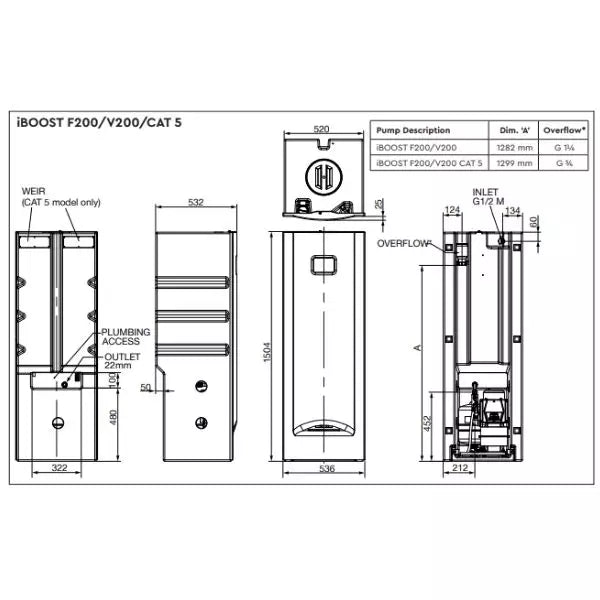 The Flomate iBoost Pump 46668 F200 is a compact and efficient water pressure booster designed to deliver a powerful and reliable supply of water for domestic and light commercial applications. With a robust closed valve pressure of up to 4.5 bar and flow rates reaching up to 100 litres per minute, this pump ensures consistent water flow even in properties with multiple bathrooms and high water demand.