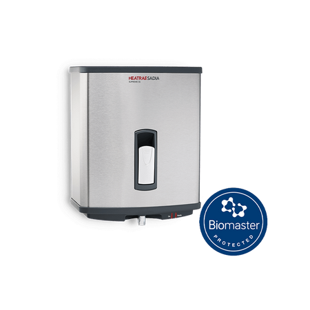 The Heatrae Sadia Supreme 165SS is a 5 litre stainless steel wall-mounted boiling water unit delivering instant hygienic boiling water on demand. Featuring advanced Intelliboil Plus technology and Biomaster® antimicrobial protection, it provides up to 165 cups per hour for busy commercial environments.