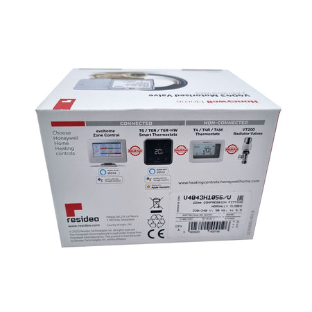 The Honeywell V4043H1056/U is a reliable 22mm, two-port motorised zone valve designed for control of water flow in domestic and light commercial central heating systems. It features a spring return action, manual lever, and replaceable powerhead, ensuring ease of maintenance and operational efficiency. Its durable build with compression fittings makes it an essential component for zone control applications.