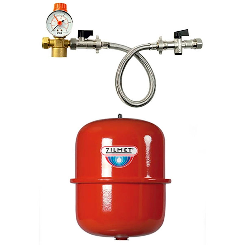- Complete kit: Includes filling loop, double check valve, isolating ball assembly, ball valve, safety relief valve with gauge, and 18L vessel.