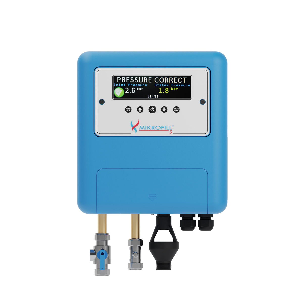 ⚠️ Not suitable for outdoor installation or environments subject to excessively cold temperatures. For systems operating above 90°C, contact Mikrofill technical department before specifying. A pressure relief/safety valve must be fitted on all sealed systems — this is not supplied with the unit.