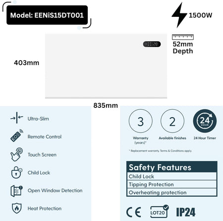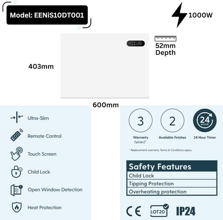 - Energy Efficient: Equipped with an intelligent thermostat and timer features to optimise energy consumption and reduce running costs.