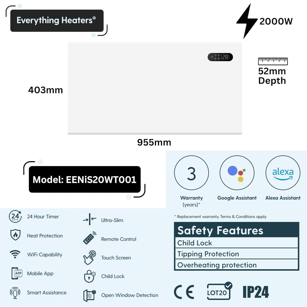 Nido Smart Electric Steel Panel Heater Wall Mounted with Wi-Fi and Remote Control