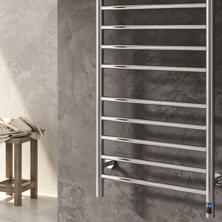 Enhance your bathroom with the elegant Reina Arnage electric towel rail, featuring a polished stainless steel finish and a practical size of 500mm x 800mm.