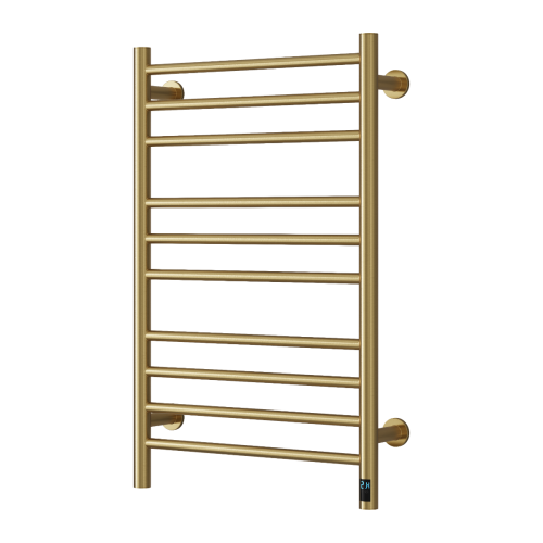 The Reina Arnage DE-ARG0805B is a stylish and functional electric towel rail constructed from high-quality stainless steel with a brushed brass finish. Measuring 500mm wide by 800mm high, it offers efficient heating performance combined with durability and a modern aesthetic. Ideal for adding warmth and elegance to bathrooms, it is designed for wall-mounted installation.