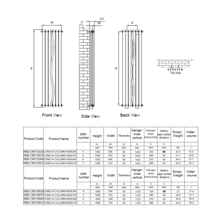 Reina Coneva RND-CNV15030A Anthracite Vertical 300mm x 1500mm