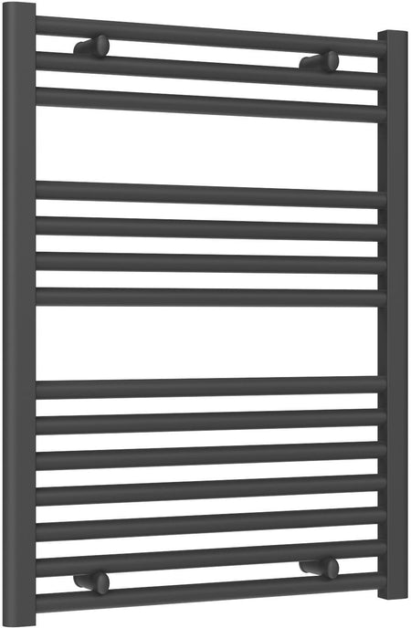 The Reina Diva Anthracite Flat Heated Towel Rail boasts a straightforward, contemporary design combined with excellent heating performance. Crafted from robust steel and finished in a sophisticated anthracite shade, this flat towel rail is ideal for medium-sized bathrooms. Its dimensions of 600mm wide by 800mm high make it both practical and stylish, suitable for various heating systems including central heating, dual fuel, and electric.
