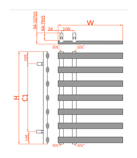 Reina Grace RND-GRC114C Chrome Towel Rail 500mm x 1140mm