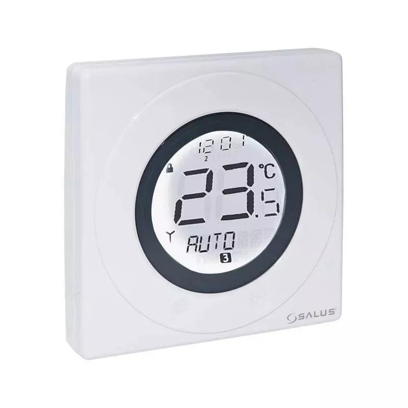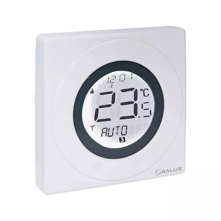 The Salus ST320 is a digital room thermostat with a large backlit LCD and Touch Ring control for quick, precise adjustments. Designed for simplicity and reliability, it features volt‑free contacts, frost protection and a burner‑on indicator, making it a robust choice for central heating control in UK homes.