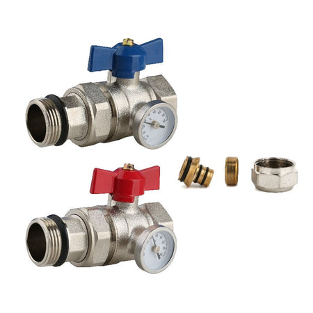 - Ball isolation valves fitted with temperature gauges on return ports for temperature monitoring