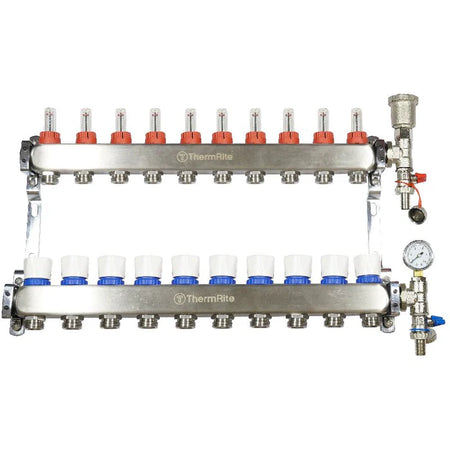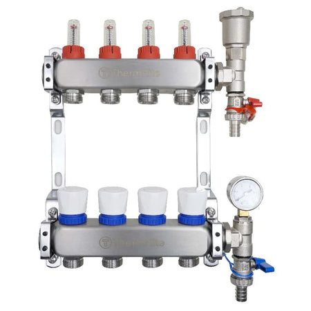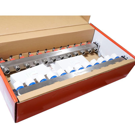 These high-quality stainless steel manifold assemblies are ideal for all warm water underfloor heating installations requiring from 2 up to 12 heating zones, combining professional reliability, user-friendly operation, and regulatory compliance.