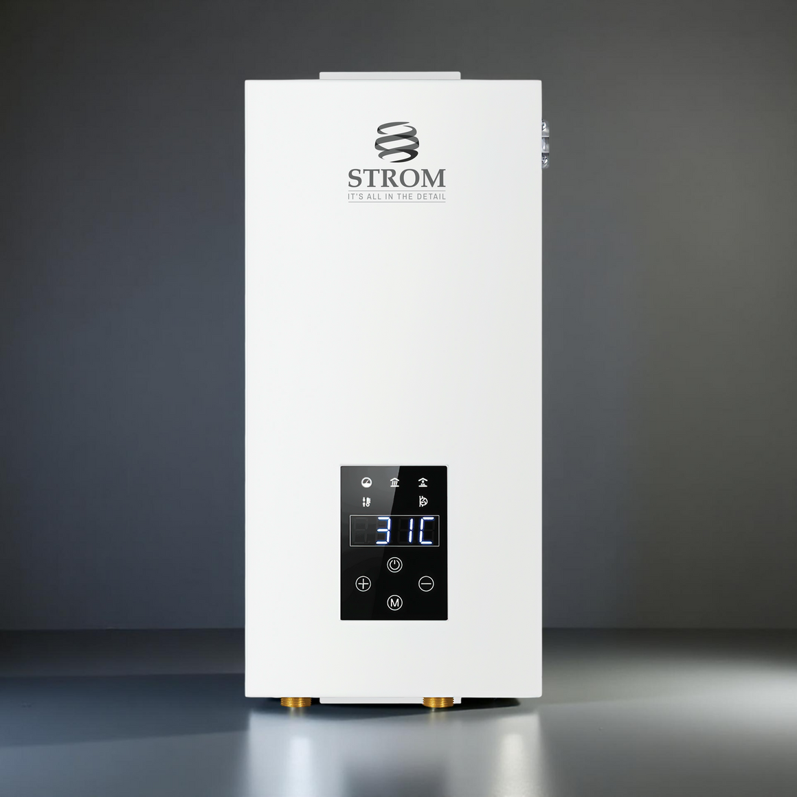 The Strom 9kW Heat Only E-Boiler is designed for medium-sized homes seeking an efficient, low-maintenance electric central heating solution. Its compact design and silent operation make it ideal for properties where space and quiet are priorities.