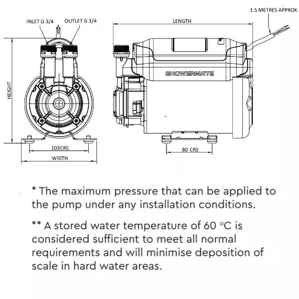 - 2.0 Bar Pressure: Delivers ample boosting for showers and bathroom outlets