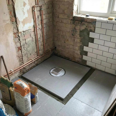 This waste has a horizontal (side-exit) outlet. This is the correct choice for the vast majority of wet room tray former installations in the UK, where the waste pipe runs horizontally within the floor construction to a stack or soil pipe. On timber joist floors, the horizontal outlet exits the side of the trap body and connects directly into the waste run between joists. On concrete floors with a screed, the waste pipe is typically laid within the screed bed before the tray former is positioned.