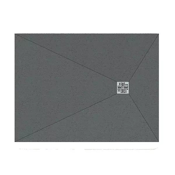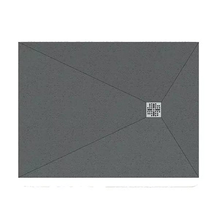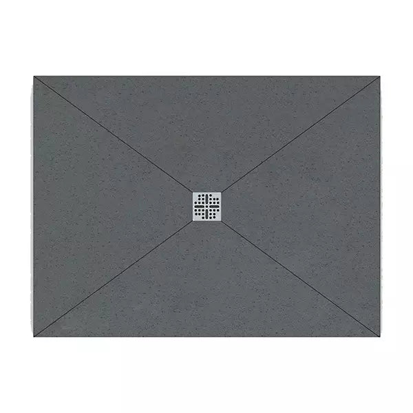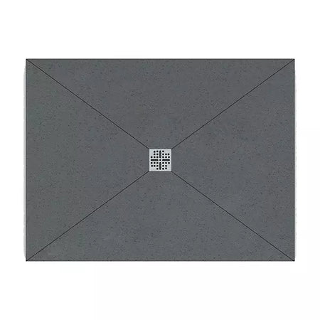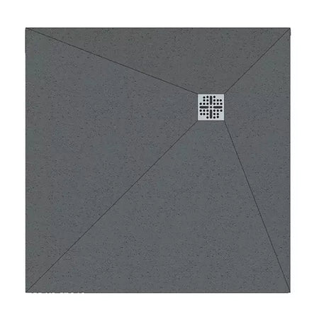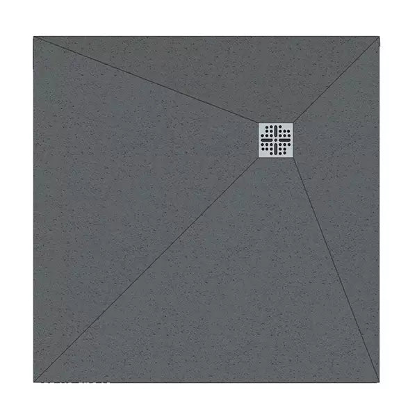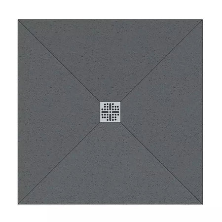 The square waste is positioned at the geometric centre of the tray. The tray surface falls from all four edges symmetrically towards the central waste point — a four-directional fall. Water flows inward from every direction simultaneously.