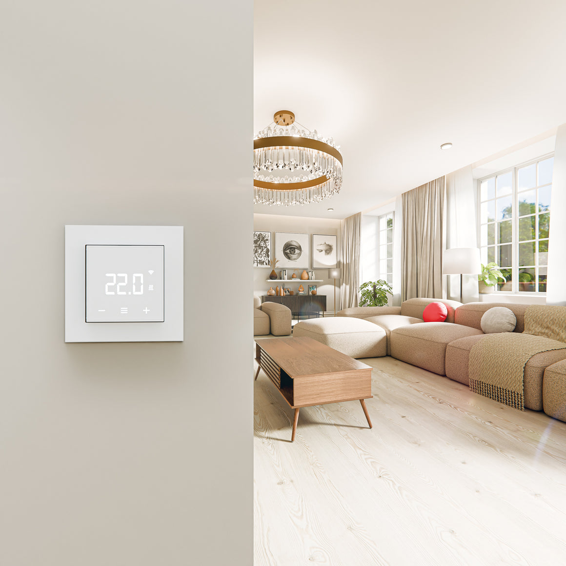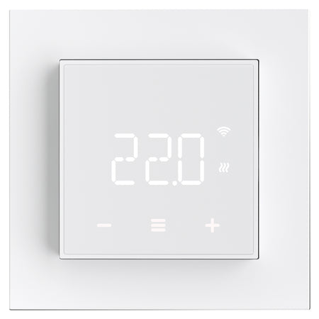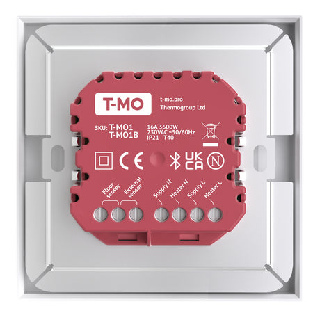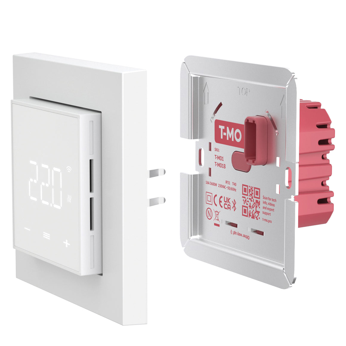 Take control of your electric underfloor heating with the ThermoSphere T-MO Thermostat in classic white. Designed for effortless installation and use, this smart thermostat features a easy to use touch display that fades away when not in use, combined with the T-MO App for seamless remote control.