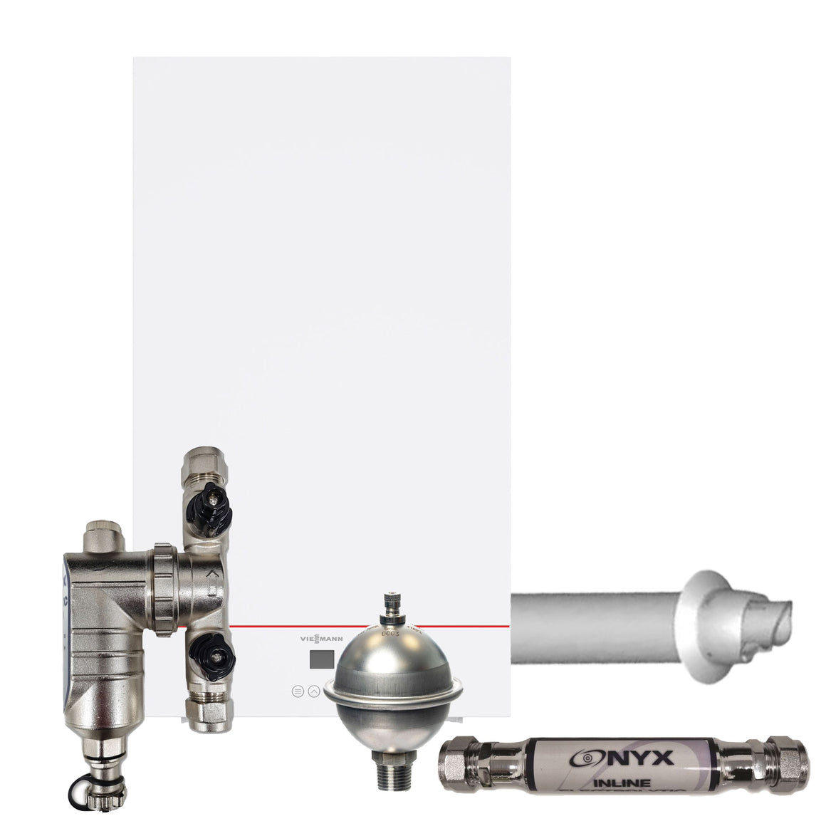 Order now for the Viessmann Vitodens Classic 24kW combi boiler bundle - complete installation package with flue and Onyx filtration.