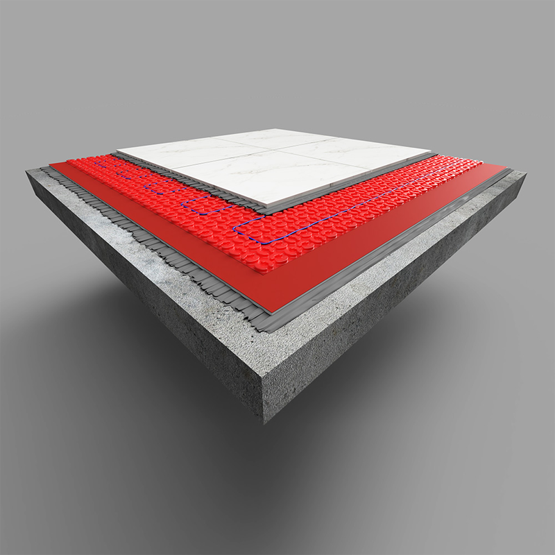- Install cable by clipping into membrane studs; lay membrane over level subfloor (self-adhesive or bonded).